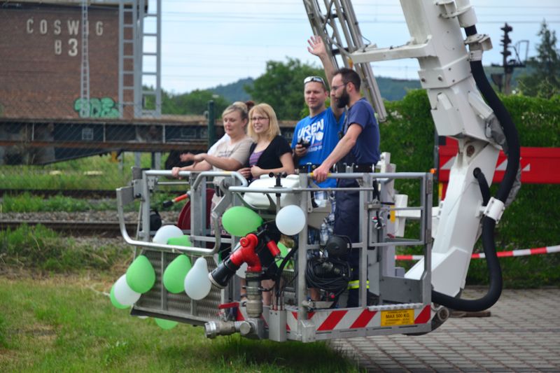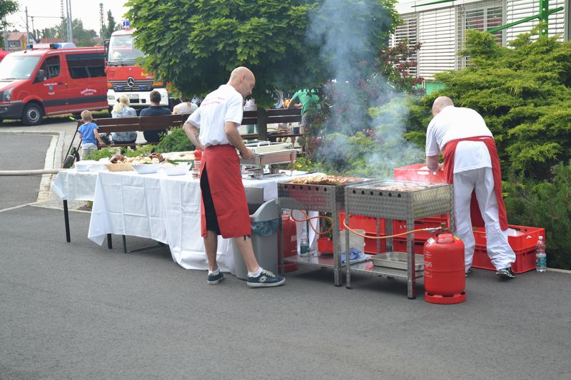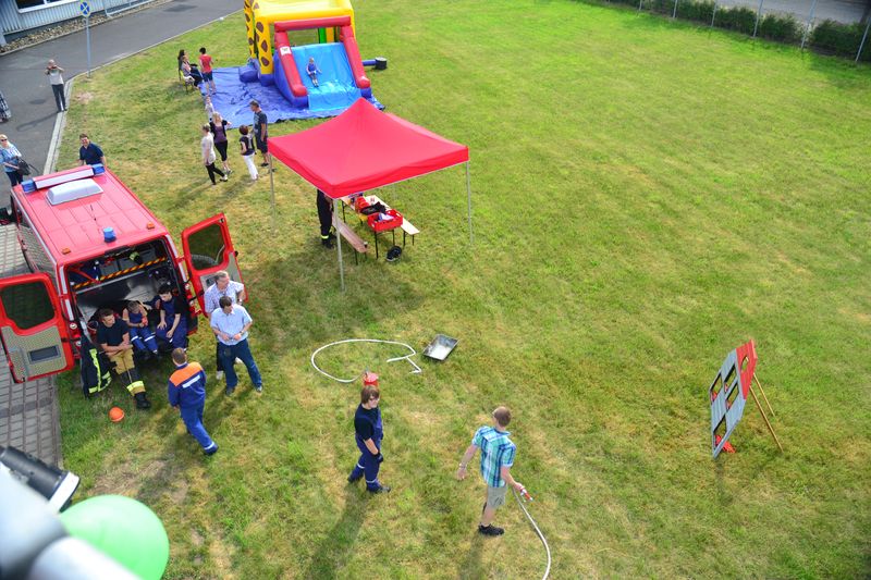 Begonnen haben die Feierlichkeiten am Nachmittag mit Kaffee und Kuchen in entspannter Atmosphäre. Die tatkräftige Unterstützung der Freiwilligen Feuerwehr Coswig sorgten für großes Interesse und Staunen bei unseren kleinen Gästen ebenso wie bei den großen. Für die körperliche Ertüchtigung wurde mit Tischtennis, Kickertisch und einem kleinen Fußballfeld gesorgt. Für die kleinen Gäste wurde zudem eine Hüpfburg organisiert.