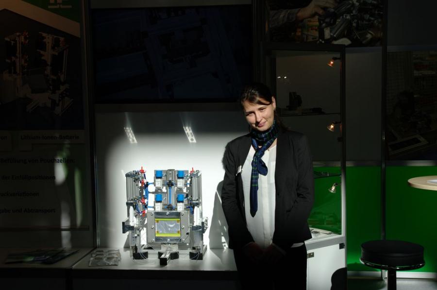 Neben unseren Produkten und Leistungen unter anderem aus der eigenen Teile- und Baugruppenfertigung und auch der Messtechnik haben wir dieses Jahr erstmalig aus dem Gebiet der Forschung & Entwicklung eine Einrichtung zur Produktion von Lithium-Ionen-Batterien (Technologie zur Befüllung von Pouchzellen) präsentiert.