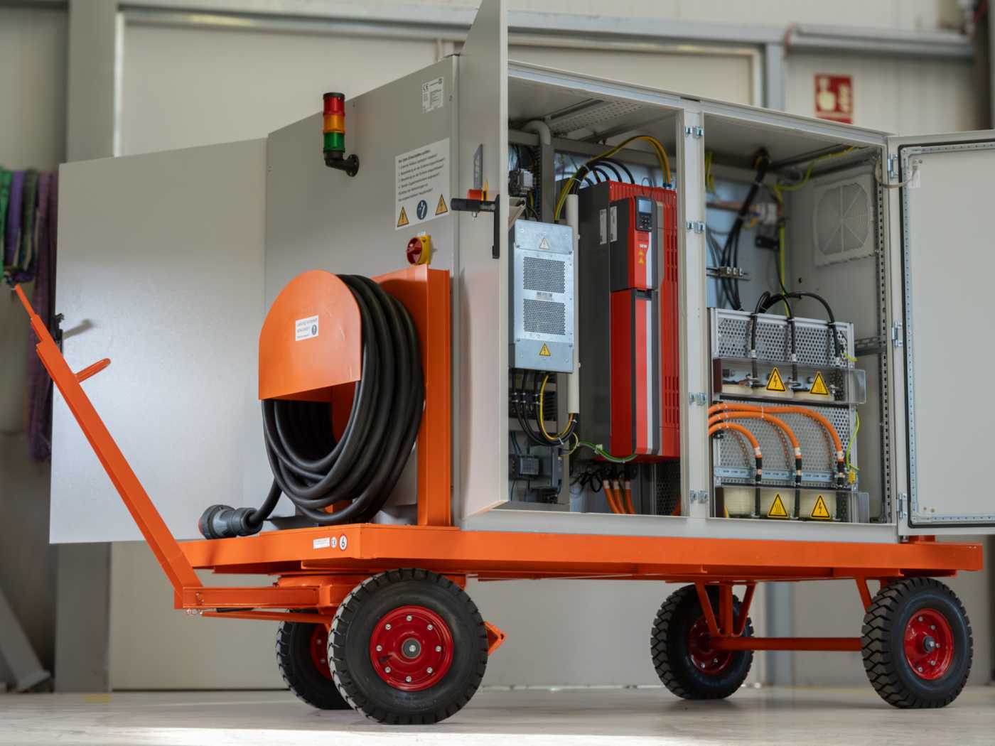 • Integrated storage compartments for feed cable, trolley supply cable and earthing cable